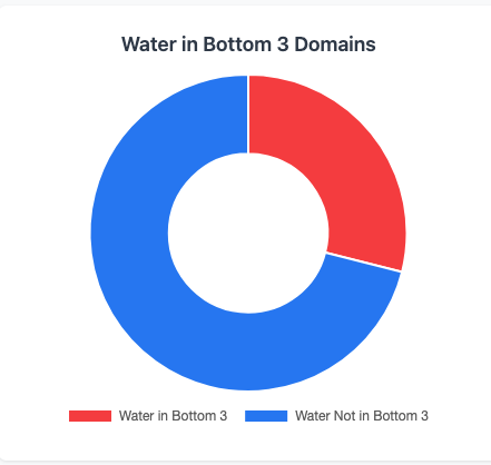Finally, we contextualize against the other six domains in the WASH FIT assessment (such as water supply or sanitation). We analyze whether Sanitation lands in a facility’s “Top 3” or “Bottom 3” performing areas.