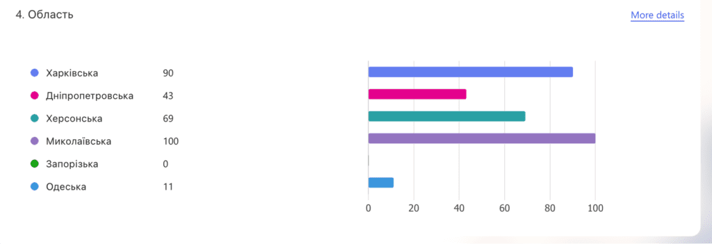 The study has been conducted across five oblasts: Kharkiv, Mykolaiv, Dnipro, Kherson, and Odesa city.